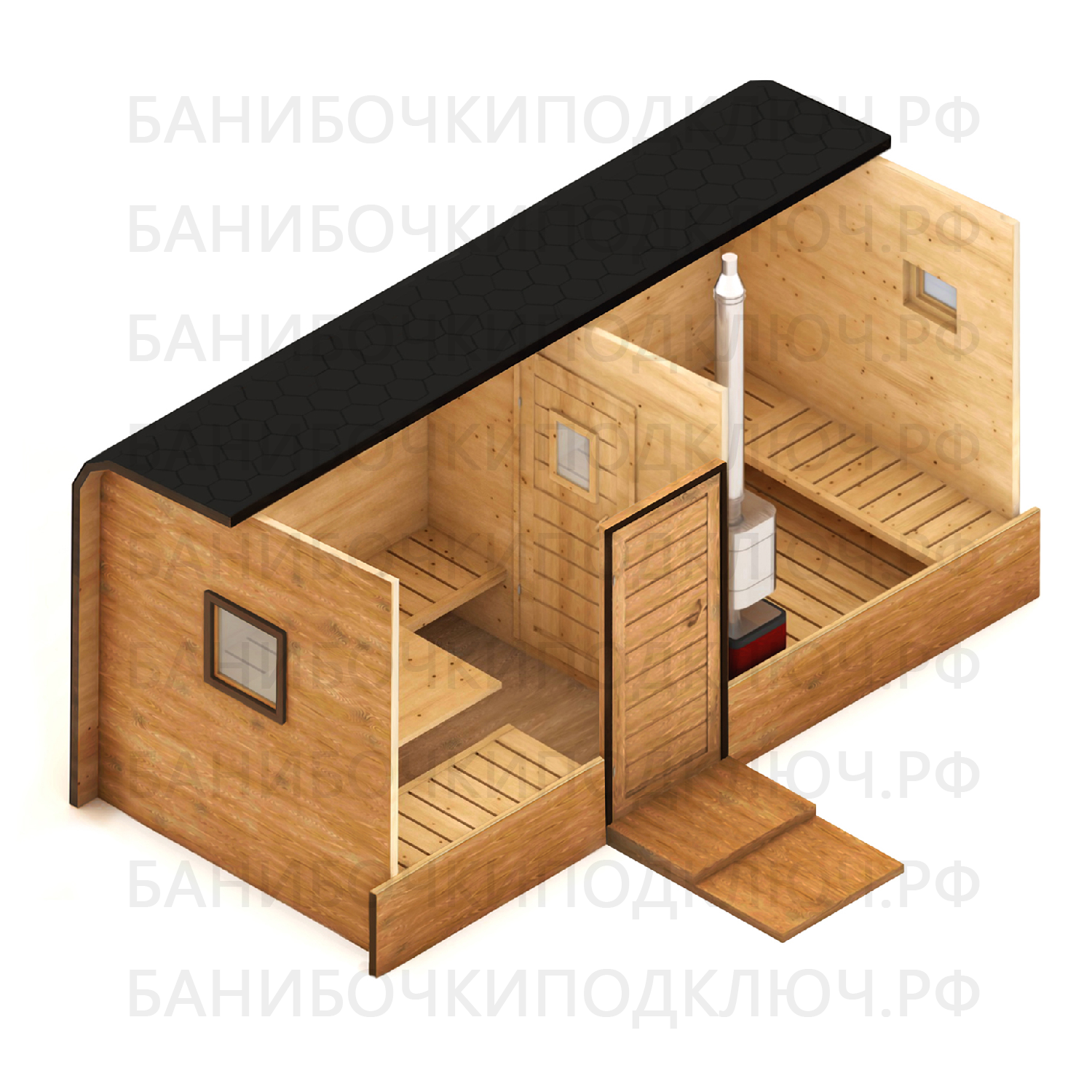Баня Викинг 6 x 2,2 м с бок. входом и проходной мойкой